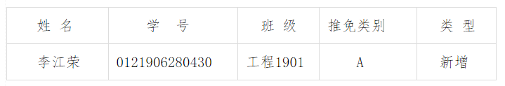 根据学校《关于开展推荐2023年优秀应届本科毕业生免试攻读硕士研究生工作的通知》精神,按照“公平、公正、公开”的原则,于9月16日开始对拟推荐名单进行了公示。因学校对我院新增A类推免名额1人(按候补名单综合成绩排序),经学院推免领导小组研究决定,现将2023年优秀应届毕业生免试攻读硕士研究生名单变更如下: