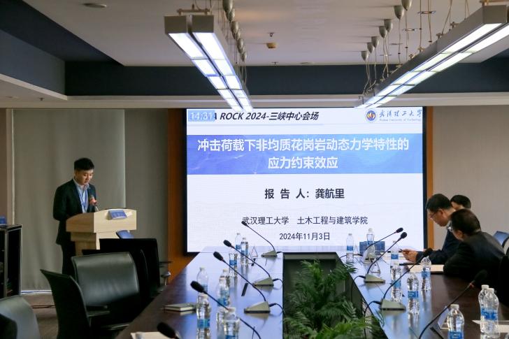 会议设有六个分会场,共进行了80余场主旨报告。我院副院长罗忆研究员受邀参加“大型通航工程建设与关键技术、大型引调水工程建设与关键技术”分会场,并做了题为“礁灰岩可加固性及锚固体的动态断裂特征研究”的主旨报告,同时主持了下半场的学术报告。我院在站博士后龚航里参加了“库区地质灾害致灾机理、监测预警与绿色防治”分会场,并做了题为“冲击荷载下非均质花岗岩动态力学特性的应力约束效应”的主旨报告。2024级博士研究生Mirza Iftikhar Ahmad和Jilo Nagessa Zerihun参加了“博士及留学生论坛”,分别做了题为“Study on mechanical properties of reef limestone concrete”和“Numerical analysis of underground tunnel deformation: A case study of Midroc Lega-Dembi gold mine”的学术分享交流。2023级硕士研究生毛子豪参加了“研究生论坛”,并做了题为“动力作用下热处理花岗岩宏细观力学特性与本构模型研究”的学术分享交流。