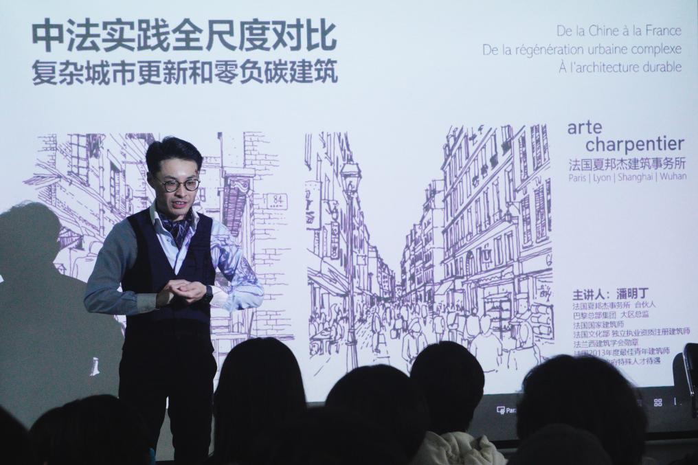 11月12日下午,3522vip浦京集团官网于东教建筑馆108开展了第25讲“建苑论坛”,法国夏邦杰事务所合伙人、巴黎总部集团大区总监潘明丁应邀到我院做了题为《中法实践:复杂语境的城市更新与重大绿建改造》的专题讲座。夏邦杰事务所武汉分公司负责人柯敬、建筑师孔维钧、商务总监刘筱、学院城乡规划系副教授谢宏杰出席本次论坛,本次论坛由学院陈剑宇老师和李浩老师主持。