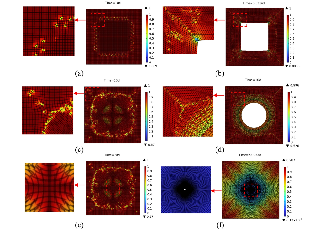 为揭示这一科学难题,本研究对南海地区的珊瑚礁灰岩进行了岩芯取样,采用纳米压痕技术深入研究了溶蚀前后岩石的微观力学性能变化。同时,利用CT扫描获取岩石的真实孔隙结构,结合图像处理技术,建立了一种适用于复杂孔隙结构溶蚀研究的数值模型。该模型精确表征了溶蚀过程中孔隙的动态演化,并分析了温度和矿物成分对溶蚀过程的影响。该研究成果深化了对珊瑚礁灰岩物理与化学性质的理解,揭示了溶蚀对珊瑚礁灰岩力学性能的影响机制,为岛屿和珊瑚礁的安全稳定建设提供了重要的理论基础。