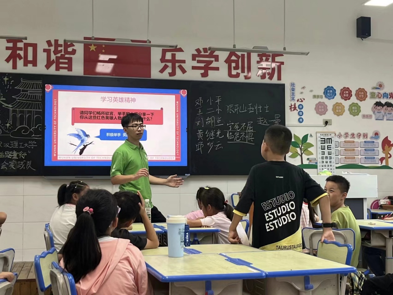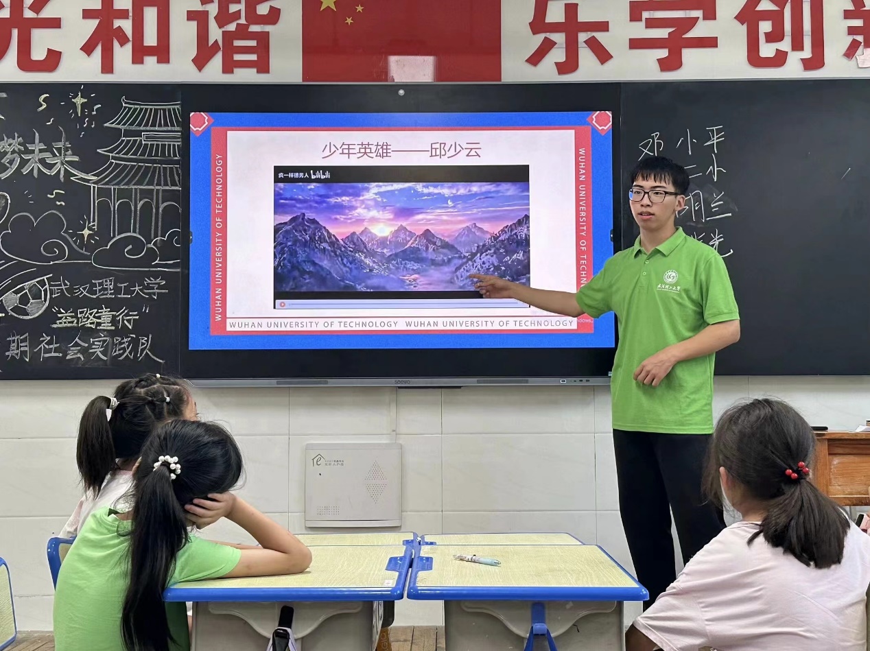 中国青年网襄阳7月14日电 在这个炎炎夏日,湖北省襄阳市后坪镇中心学校被一股炽热的红色浪潮紧紧包裹,仿佛连空气都弥漫着对历史的敬仰与对未来的憧憬。7月14日,3522vip浦京集团官网的“益路童行”暑期社会实践队,带着对革命先烈的深切缅怀与对青少年爱国教育的热忱,在这里成功举办了“红色英雄研讨会”爱国主题教育活动。此次活动,如同一场及时雨,滋润了孩子们的心田,培养了他们内心深处的爱国情怀与民族自豪感。