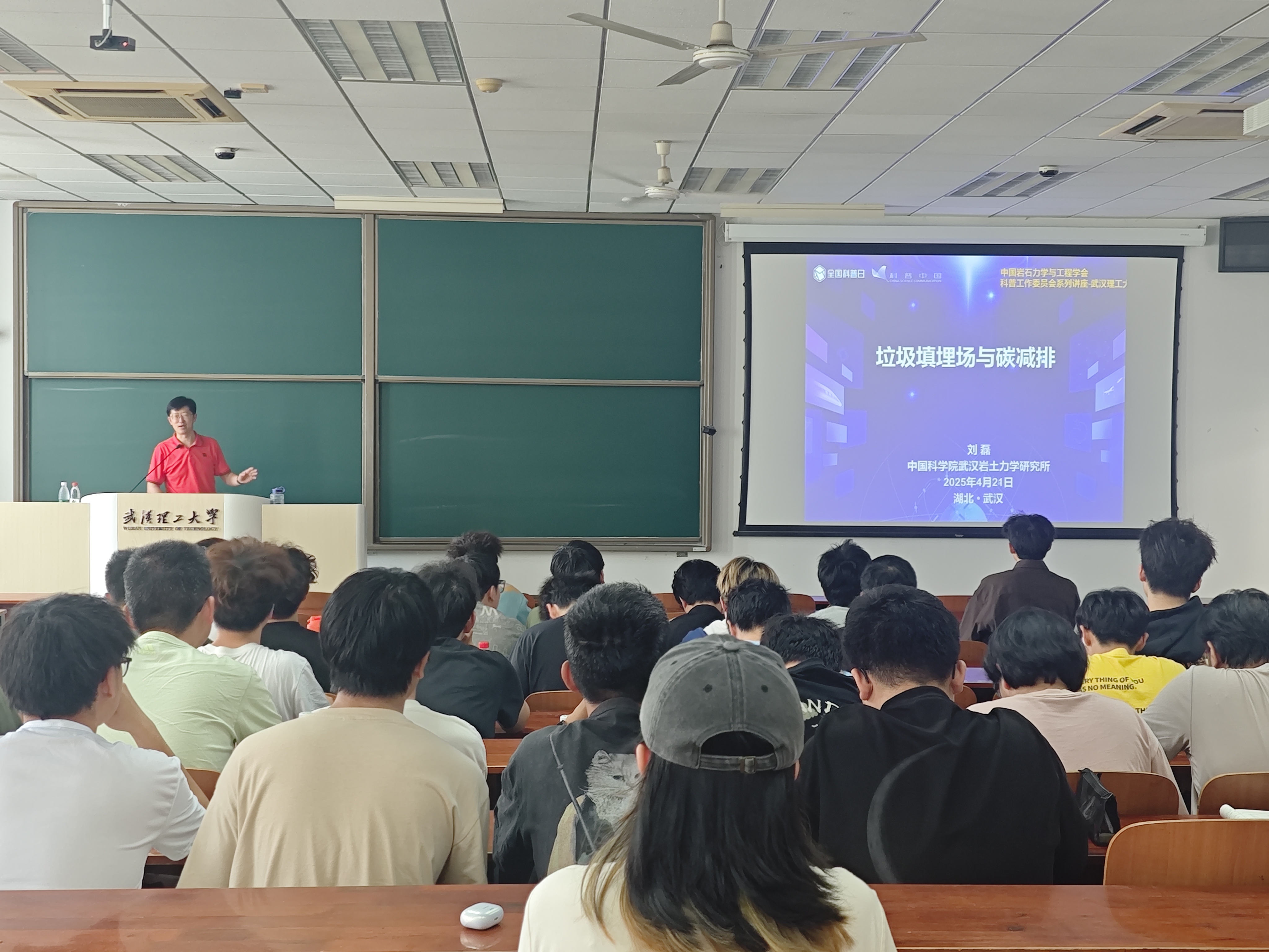 4月21日下午,由中国科学院武汉岩土力学研究所特聘研究员、污染泥土科学与工程湖北省重点实验室主任刘磊教授主讲的“垃圾填埋场与碳减排”主题讲座在新1-310教室举行。学院本科2022级、2023级陈宗基岩体工程菁英班全体同学参与。
