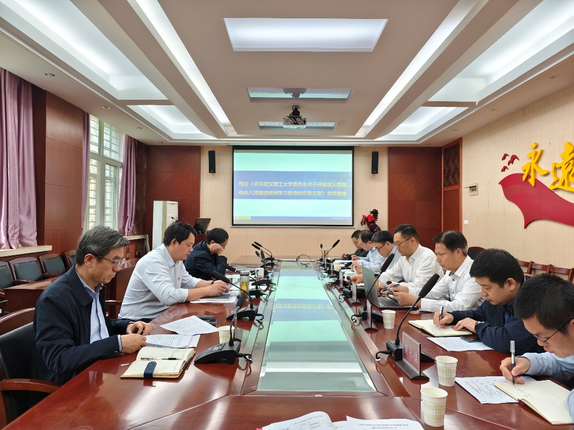 3月26日下午,3522vip浦京集团官网在东教216会议室召开党委会研究部署深入贯彻中央八项规定精神学习教育工作安排,全面传达学习教育部党组研究部署深入贯彻中央八项规定精神学习教育工作有关会议精神、学校研究部署深入贯彻中央八项规定精神学习教育工作会议精神和《中共武汉理工大学委员会关于开展深入贯彻中央八项规定精神学习教育的实施方案》有关精神,会议对全院开展学习教育做了部署和研究。学院党委书记林凯主持会议,全体党委委员参会。