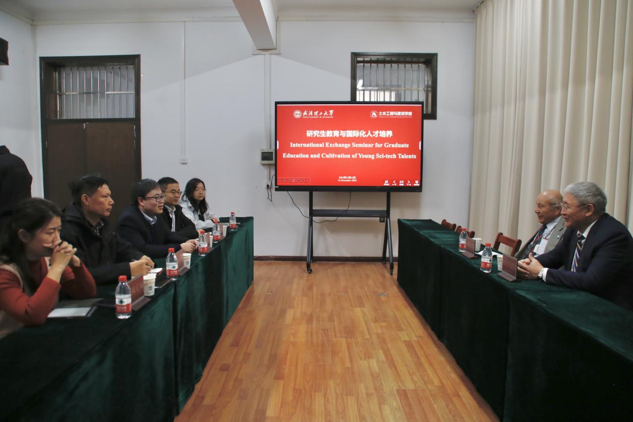 党委副书记尚亿军介绍武汉理工大学支持研究生国际化教育的政策,包括设立专项基金、推动国际合作项目、深化联合培养等,鼓励学院加强国际合作。